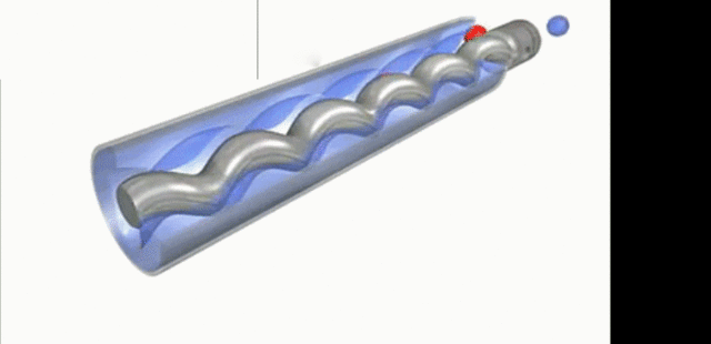 螺杆泵运行时,液体被吸进去以后,就投入到螺纹和泵壳被包围的封闭空间,当主动螺杆转动时,螺杆泵封闭容积在螺牙的压迫下增加螺杆泵压力,并顺着轴向转移。因为螺杆是相同的速度旋转,因此液体流出的流量也是平均的。