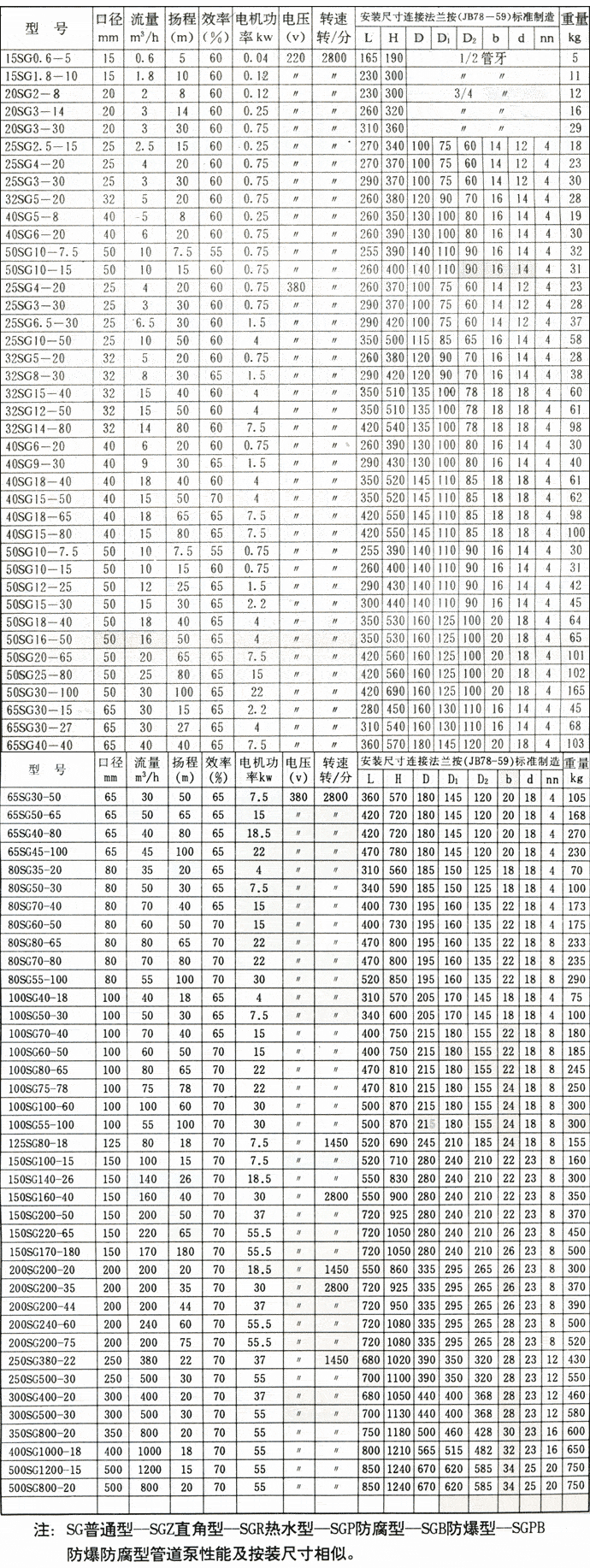 2.SGR系列热水管道泵适用于采暖、锅炉等行业的高温热水增压循环。使用温度150℃以下。